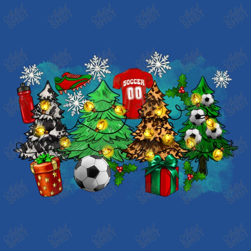 Digital printing is an amazing process that involves your artwork “Christmas Trees With Soccer” being processed by a computer and then printed directly onto the surface of your product. Digital printing is not a heat transfer or applique, as the ink directly adheres to the fabric of your shirt. Each printing process has its strengths, and our artwork team will weigh these when deciding which to use for your art.