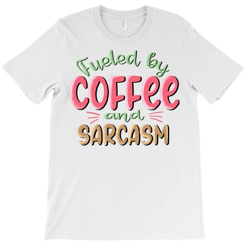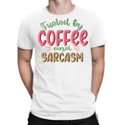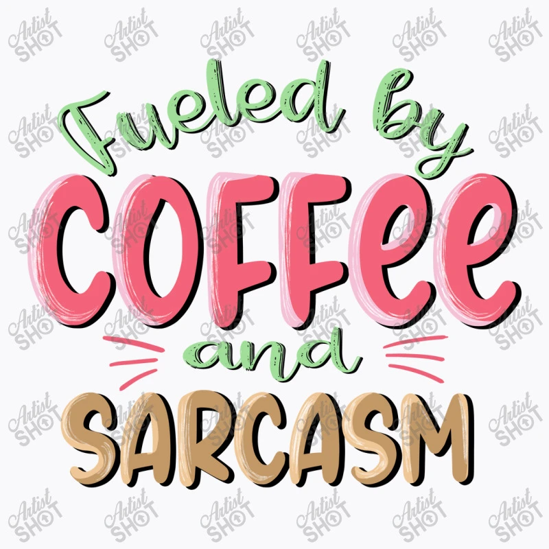 Digital printing is an amazing process that involves your artwork “Fueled By Coffee And Sarcasm Sublimatio” being processed by a computer and then printed directly onto the surface of your product. Digital printing is not a heat transfer or applique, as the ink directly adheres to the fabric of your shirt. Each printing process has its strengths, and our artwork team will weigh these when deciding which to use for your art.