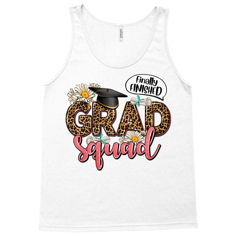 Digital printing is an amazing process that involves your artwork “Grad Squad” being processed by a computer and then printed directly onto the surface of your product. Digital printing is not a heat transfer or applique, as the ink directly adheres to the fabric of your shirt. Each printing process has its strengths, and our artwork team will weigh these when deciding which to use for your art.