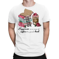 Digital printing is an amazing process that involves your artwork “Happiness Is A Cup Of Coffee & A Good B” being processed by a computer and then printed directly onto the surface of your product. Digital printing is not a heat transfer or applique, as the ink directly adheres to the fabric of your shirt. Each printing process has its strengths, and our artwork team will weigh these when deciding which to use for your art.
