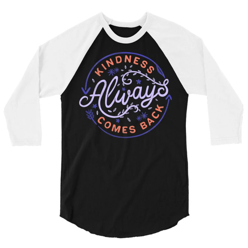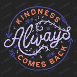 Digital printing is an amazing process that involves your artwork “Kindness Always Comes Back” being processed by a computer and then printed directly onto the surface of your product. Digital printing is not a heat transfer or applique, as the ink directly adheres to the fabric of your shirt. Each printing process has its strengths, and our artwork team will weigh these when deciding which to use for your art.