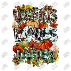 Digital printing is an amazing process that involves your artwork “Leaves Lattes Fall Pumpkin” being processed by a computer and then printed directly onto the surface of your product. Digital printing is not a heat transfer or applique, as the ink directly adheres to the fabric of your shirt. Each printing process has its strengths, and our artwork team will weigh these when deciding which to use for your art.