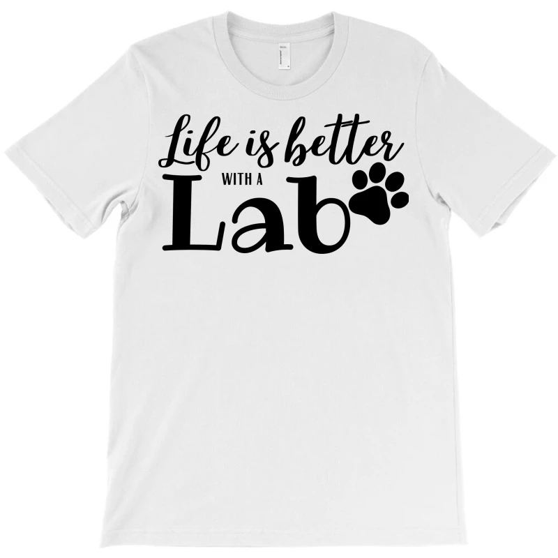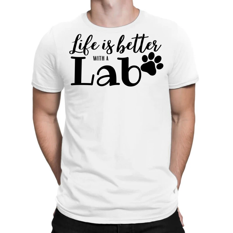 Digital printing is an amazing process that involves your artwork “Life Is Better With A Lab, Labrador Retriever” being processed by a computer and then printed directly onto the surface of your product. Digital printing is not a heat transfer or applique, as the ink directly adheres to the fabric of your shirt. Each printing process has its strengths, and our artwork team will weigh these when deciding which to use for your art.