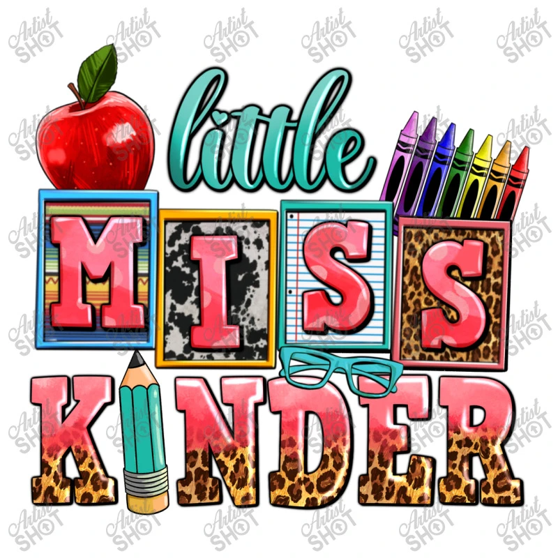 Digital printing is an amazing process that involves your artwork “Little Miss Kinder” being processed by a computer and then printed directly onto the surface of your product. Digital printing is not a heat transfer or applique, as the ink directly adheres to the fabric of your shirt. Each printing process has its strengths, and our artwork team will weigh these when deciding which to use for your art.