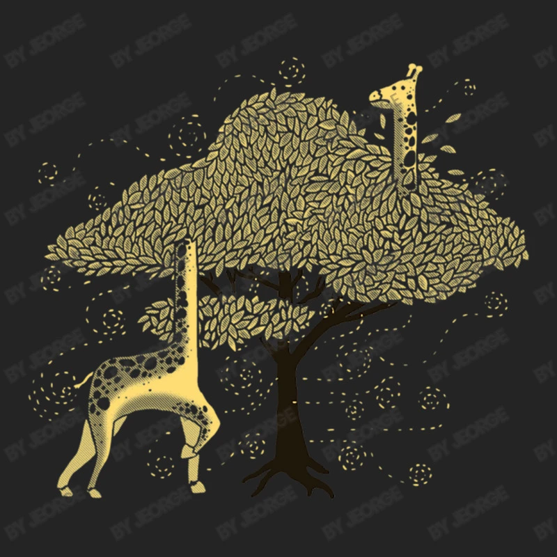 Plot Printing Consists of both Flock and Flex Print, This process transfers your artwork “Lost In Africa” from a special foil through an immense amount of pressure and heat. Flex images are smooth, a little plastic like and a tad bit glossy. Flock images have a fuzzy velvet-like texture and appear slightly more elevated. Think of drawing just the shadows and how that would appear without color. 3 colors plus the color of the garment itself is used to print.