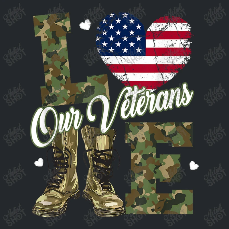 This love our veterans heart usa flag camouflage army b is available in a vast array of color options,