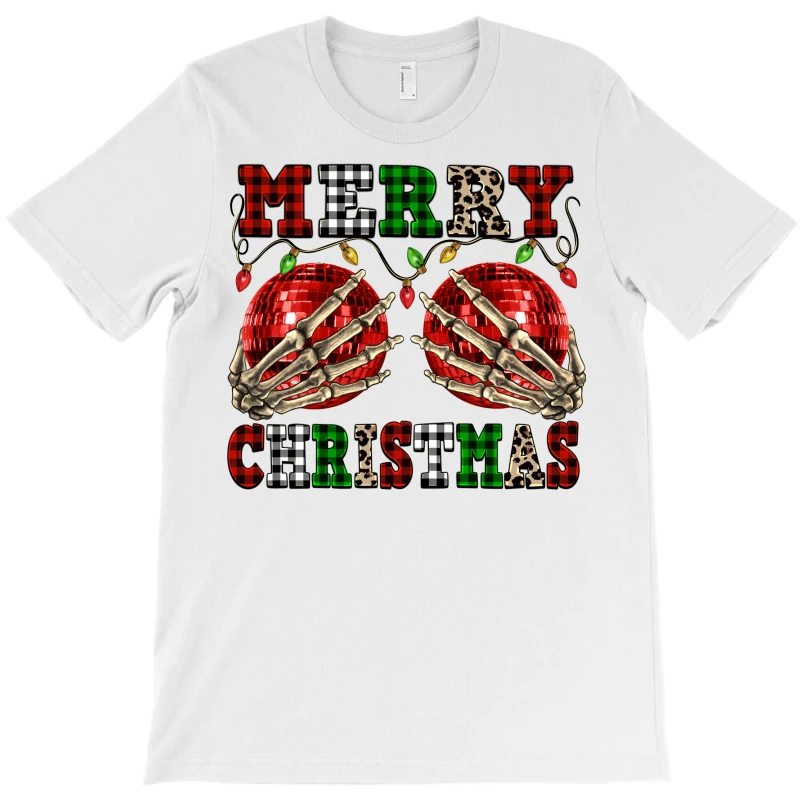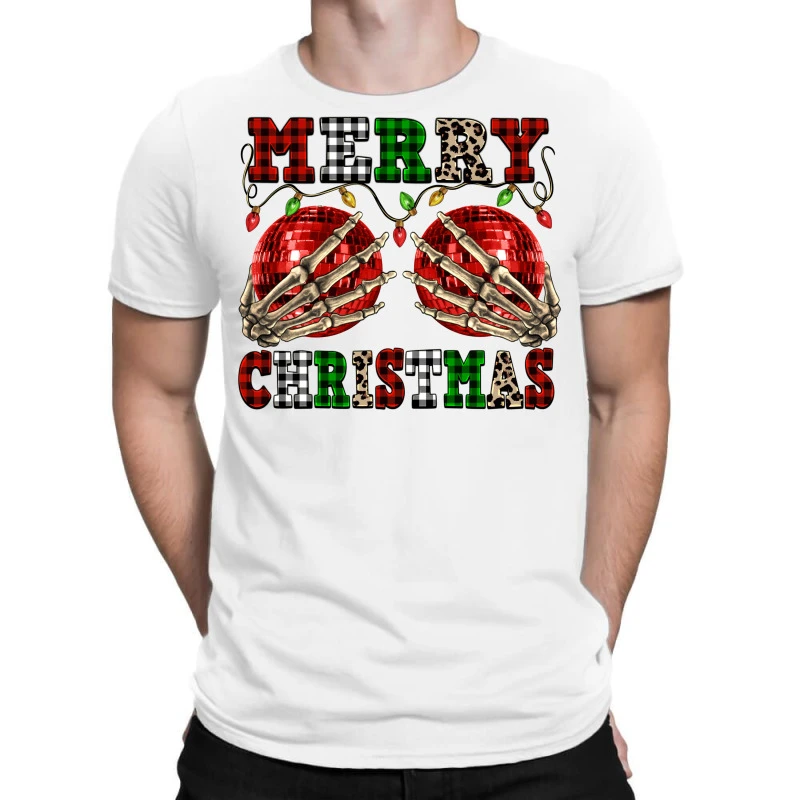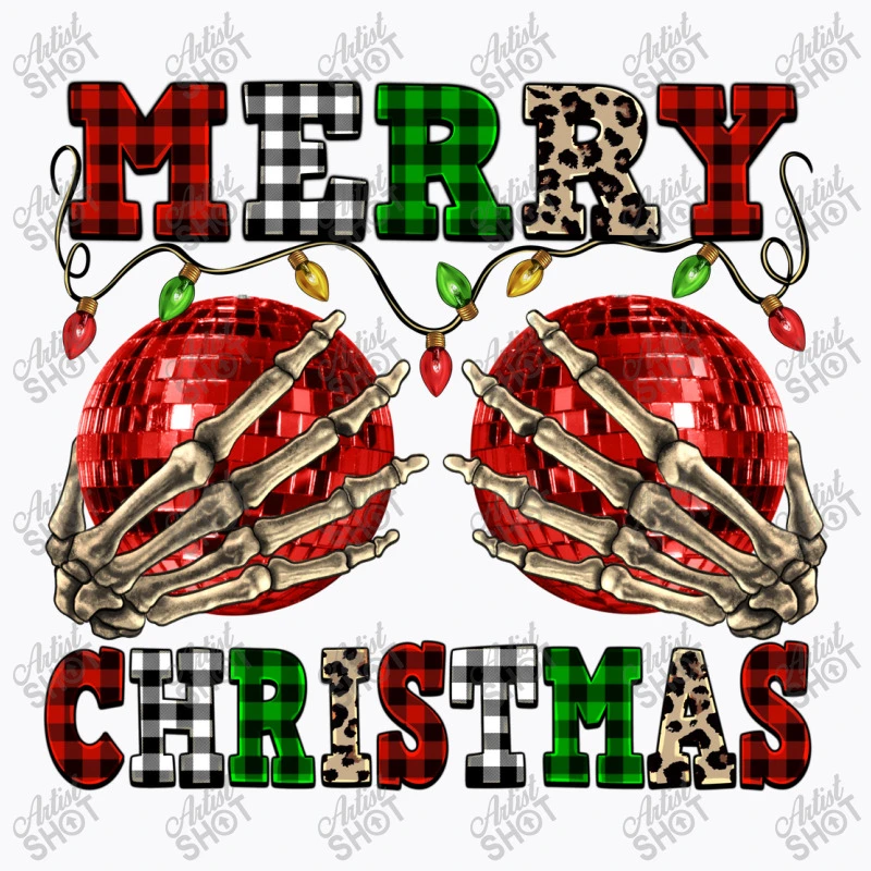 Digital printing is an amazing process that involves your artwork “Merry Christmas Skeleton Hands Boobs” being processed by a computer and then printed directly onto the surface of your product. Digital printing is not a heat transfer or applique, as the ink directly adheres to the fabric of your shirt. Each printing process has its strengths, and our artwork team will weigh these when deciding which to use for your art.