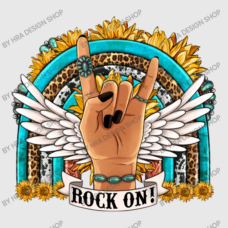 Plot Printing Consists of both Flock and Flex Print, This process transfers your artwork “Mother’s Day Western Rock Hand Rainbow” from a special foil through an immense amount of pressure and heat. Flex images are smooth, a little plastic like and a tad bit glossy. Flock images have a fuzzy velvet-like texture and appear slightly more elevated. Think of drawing just the shadows and how that would appear without color. 3 colors plus the color of the garment itself is used to print.