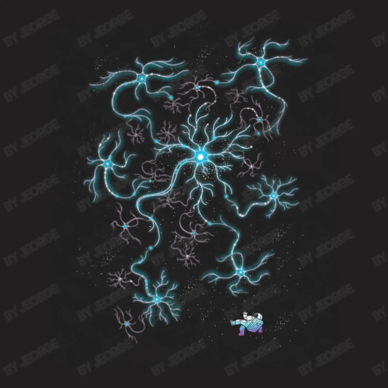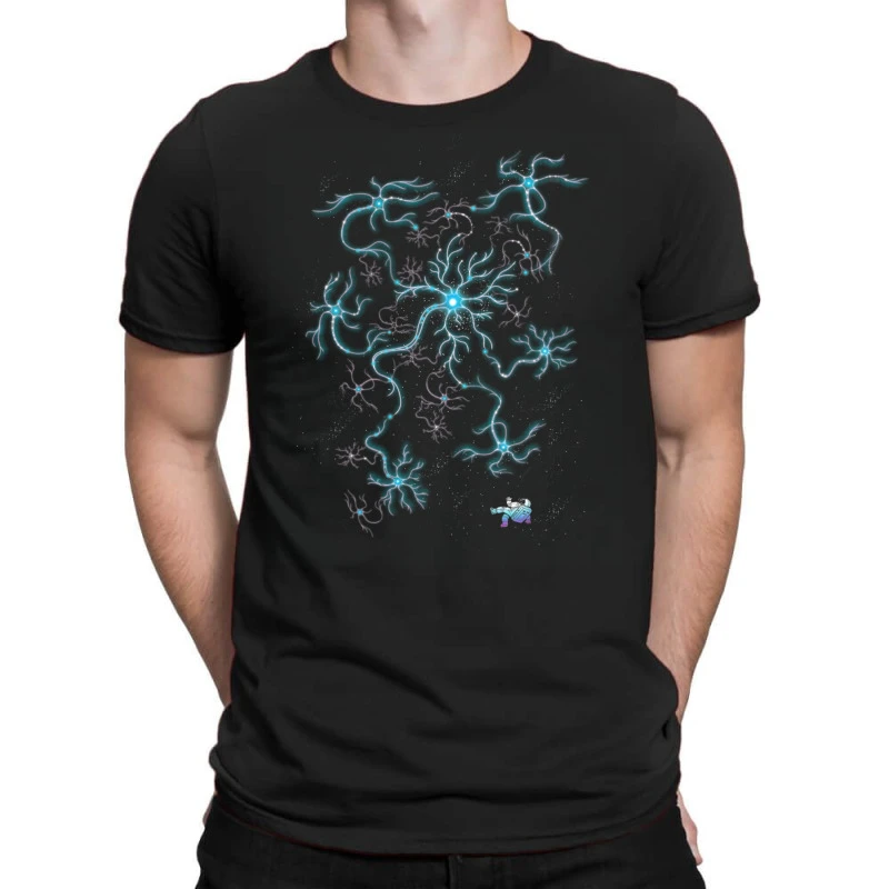Digital printing is an amazing process that involves your artwork “Neuron Galaxy” being processed by a computer and then printed directly onto the surface of your product. Digital printing is not a heat transfer or applique, as the ink directly adheres to the fabric of your shirt. Each printing process has its strengths, and our artwork team will weigh these when deciding which to use for your art.