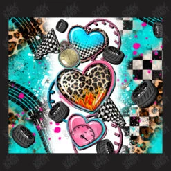 Plot Printing Consists of both Flock and Flex Print, This process transfers your artwork “Race Heart” from a special foil through an immense amount of pressure and heat. Flex images are smooth, a little plastic like and a tad bit glossy. Flock images have a fuzzy velvet-like texture and appear slightly more elevated. Think of drawing just the shadows and how that would appear without color. 3 colors plus the color of the garment itself is used to print.