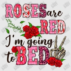 Digital printing is an amazing process that involves your artwork “Roses Are Red I’m Going To Bed” being processed by a computer and then printed directly onto the surface of your product. Digital printing is not a heat transfer or applique, as the ink directly adheres to the fabric of your shirt. Each printing process has its strengths, and our artwork team will weigh these when deciding which to use for your art.