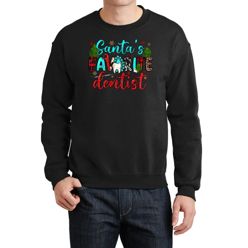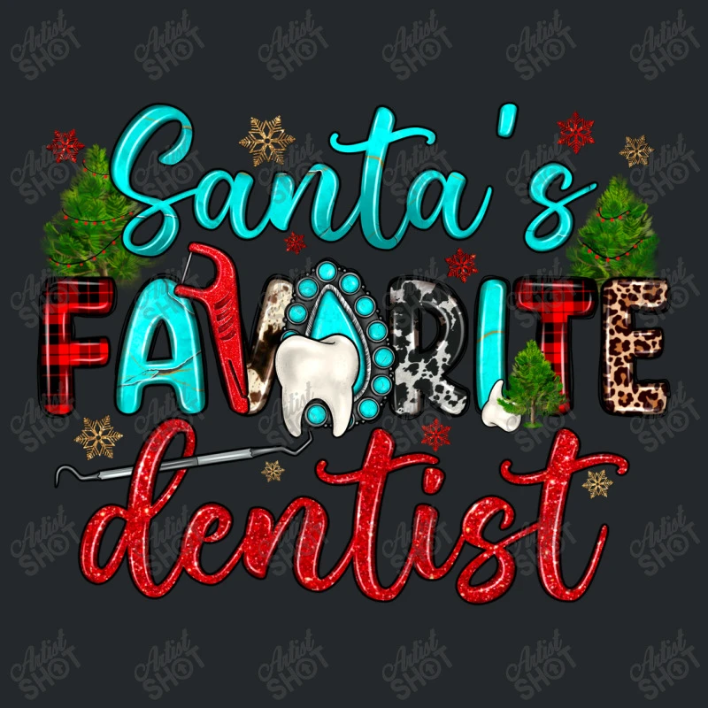 Digital printing is an amazing process that involves your artwork “Santas Favorite Dentist” being processed by a computer and then printed directly onto the surface of your product. Digital printing is not a heat transfer or applique, as the ink directly adheres to the fabric of your shirt. Each printing process has its strengths, and our artwork team will weigh these when deciding which to use for your art.