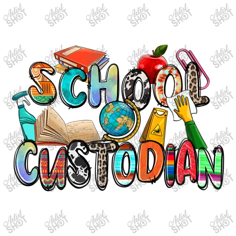 Digital printing is an amazing process that involves your artwork “School Custodian” being processed by a computer and then printed directly onto the surface of your product. Digital printing is not a heat transfer or applique, as the ink directly adheres to the fabric of your shirt. Each printing process has its strengths, and our artwork team will weigh these when deciding which to use for your art.