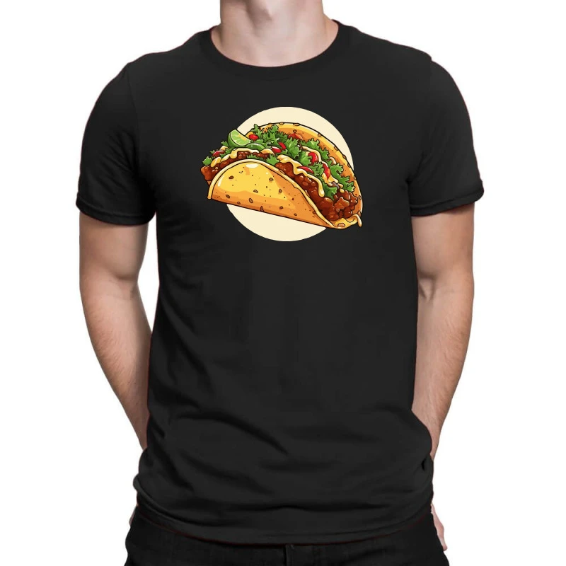 Digital printing is an amazing process that involves your artwork “Taco” being processed by a computer and then printed directly onto the surface of your product. Digital printing is not a heat transfer or applique, as the ink directly adheres to the fabric of your shirt. Each printing process has its strengths, and our artwork team will weigh these when deciding which to use for your art.