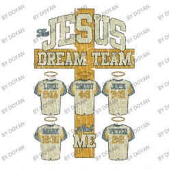 Digital printing is an amazing process that involves your artwork “The Jesus Dream Team 2000” being processed by a computer and then printed directly onto the surface of your product. Digital printing is not a heat transfer or applique, as the ink directly adheres to the fabric of your shirt. Each printing process has its strengths, and our artwork team will weigh these when deciding which to use for your art.