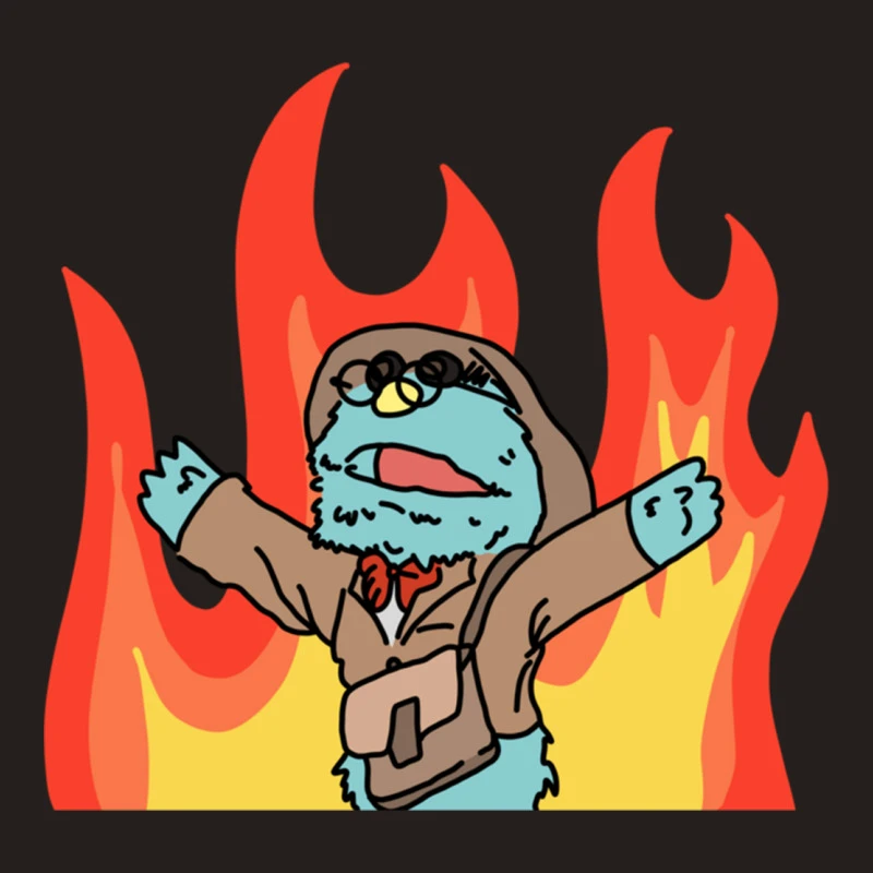 Plot Printing Consists of both Flock and Flex Print, This process transfers your artwork “The Professor (but With Fire)” from a special foil through an immense amount of pressure and heat. Flex images are smooth, a little plastic like and a tad bit glossy. Flock images have a fuzzy velvet-like texture and appear slightly more elevated. Think of drawing just the shadows and how that would appear without color. 3 colors plus the color of the garment itself is used to print.