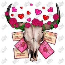 Digital printing is an amazing process that involves your artwork “Valentine’s Day Bull Skull” being processed by a computer and then printed directly onto the surface of your product. Digital printing is not a heat transfer or applique, as the ink directly adheres to the fabric of your shirt. Each printing process has its strengths, and our artwork team will weigh these when deciding which to use for your art.