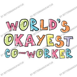 Digital printing is an amazing process that involves your artwork “World S Okayest Co Worker Gift Idea” being processed by a computer and then printed directly onto the surface of your product. Digital printing is not a heat transfer or applique, as the ink directly adheres to the fabric of your shirt. Each printing process has its strengths, and our artwork team will weigh these when deciding which to use for your art.