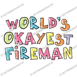 Digital printing is an amazing process that involves your artwork “World S Okayest Fireman Gift Idea” being processed by a computer and then printed directly onto the surface of your product. Digital printing is not a heat transfer or applique, as the ink directly adheres to the fabric of your shirt. Each printing process has its strengths, and our artwork team will weigh these when deciding which to use for your art.